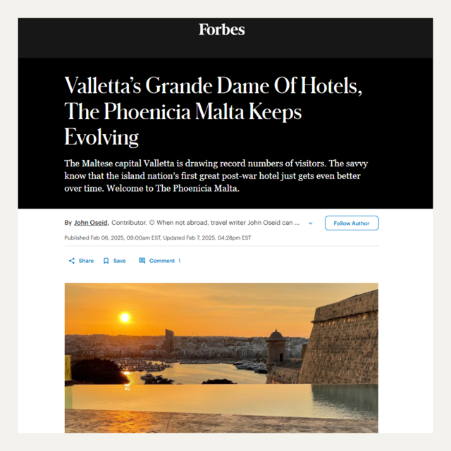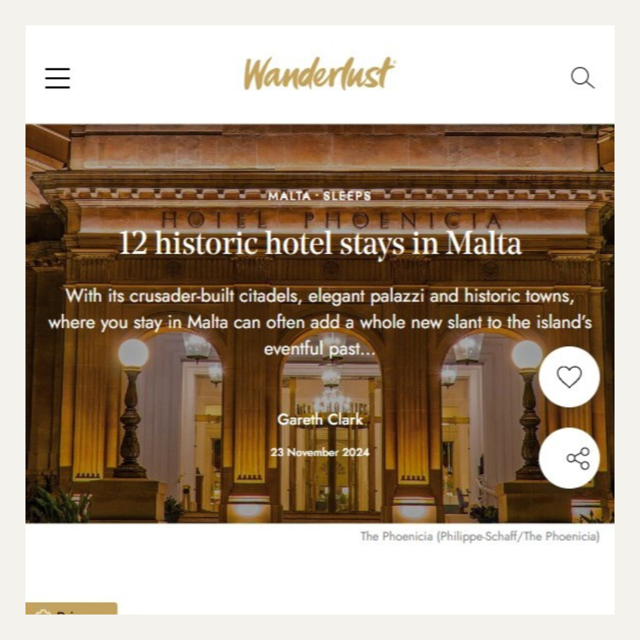 Explore international press coverage from leading travel and lifestyle publications, highlighting The Phoenicia Malta’s heritage, elegance, and refined hospitality.